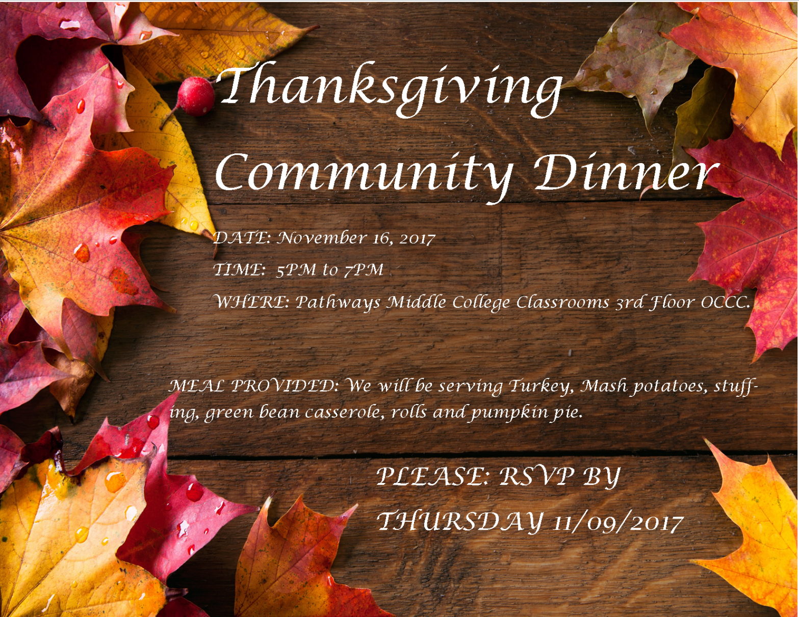 Thanksgiving Meal Posted byPathwaysNovember 16, 2017Posted inNEWS AND EVENTS Come join us. Share this: Click to share on X (Opens in new window) X Click to share on Facebook (Opens in new window) Facebook Click to email a link to a friend (Opens in new window) Email Like Loading...