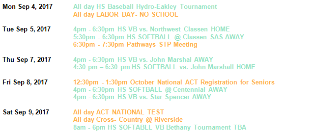 WEEKLY CALENDAR SEPT 4